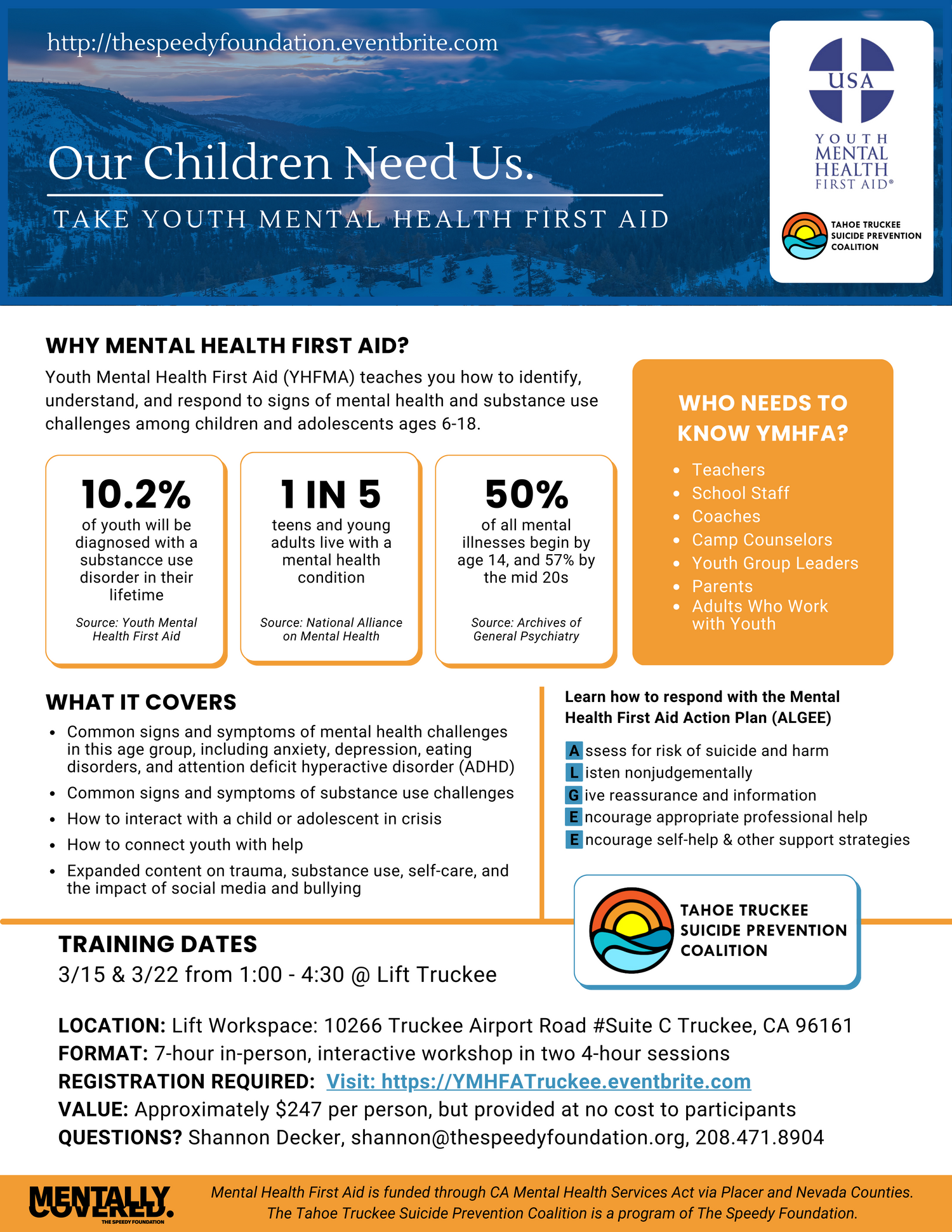 Registration Required: https://YMHFATruckee.eventbrite.com