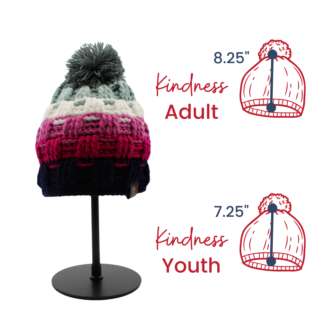 - Youth - best fits babies, toddlers, and younger kids (beanie height 7.5")